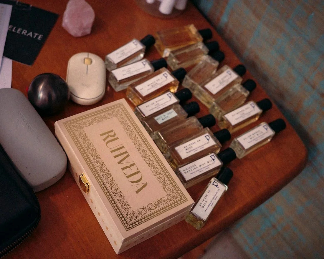 Since that day, Fatema and her team have together built Ruhveda into a thoughtful, modern brand rooted in heritage and intention. They blend the wisdom of Indian Culture with the elegance of fine perfumery, creating scents that feel grounded, familiar, yet global.